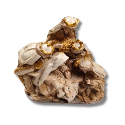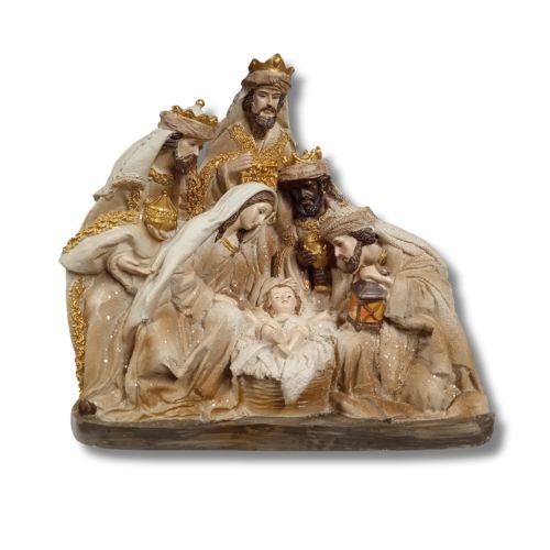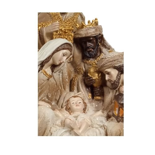 Presépio, peça única em resina, pintura con detalhes dourados e brilhantes.
